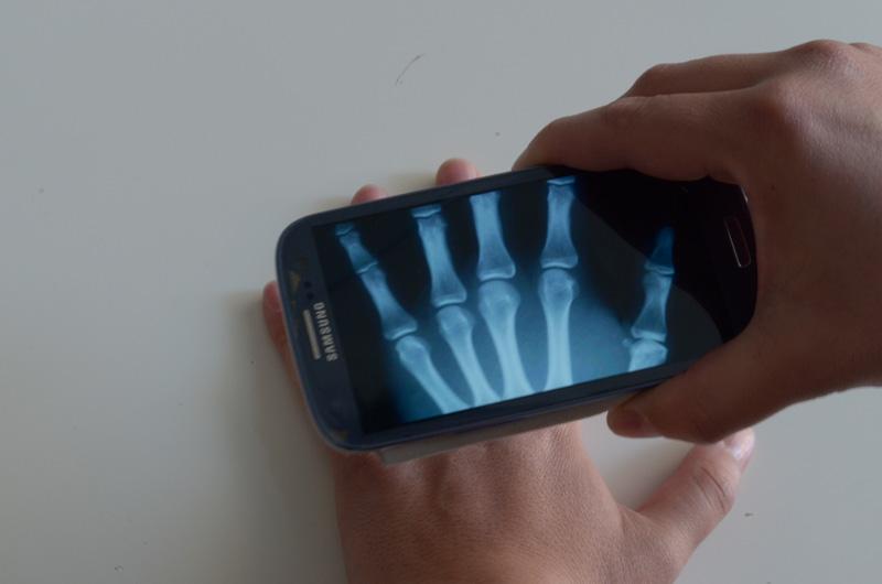 inclinar el dispositivo para deslizarse hacia arriba y abajo de la imagen de la radiografía .