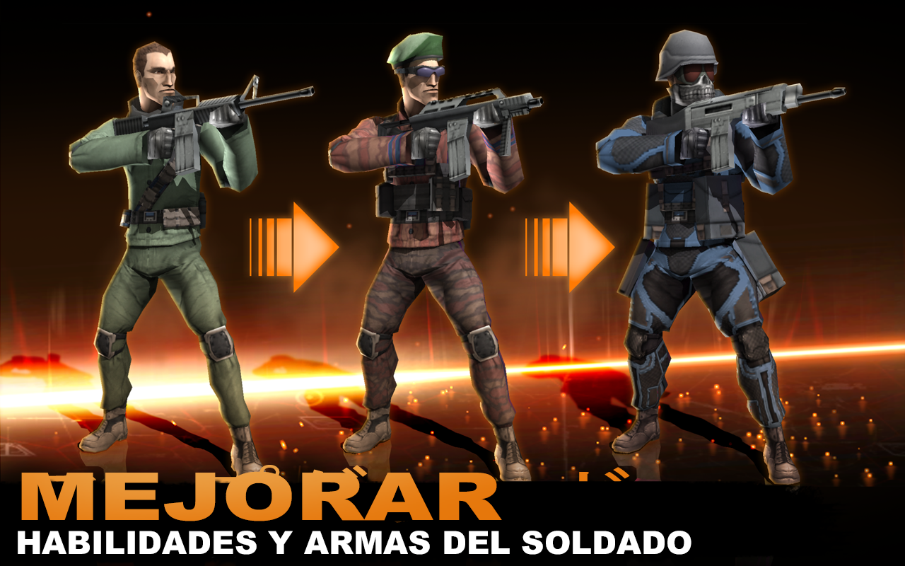 * Desbloquea nuevos soldados con mejores armas y habilidades para mejorar el nivel de combate de tu equipo.