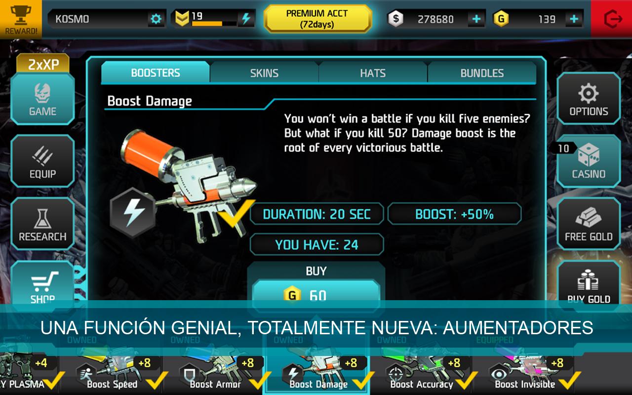 ☣Disfruta de una función genial: AUMENTADORES (velocidad, armadura, daño, precisión, invisibilidad)