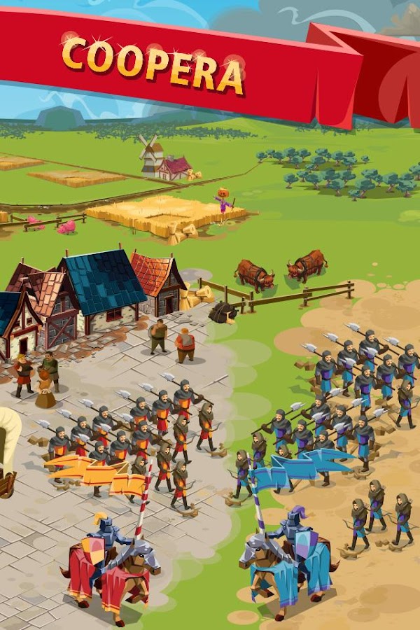 Recoge, produce e intercambia recursos para levantar tu castillo y convertirlo en una imponente fortaleza. Recluta un poderoso ejército para conquistar valiosos territorios y defenderlos de ataques enemigos. ¡Forma alianzas con tus amigos para derrotar a vuestros enemigos! Luchad en trepidantes batallas contra millones de jugadoresen un gigantesco mapa interactivo.