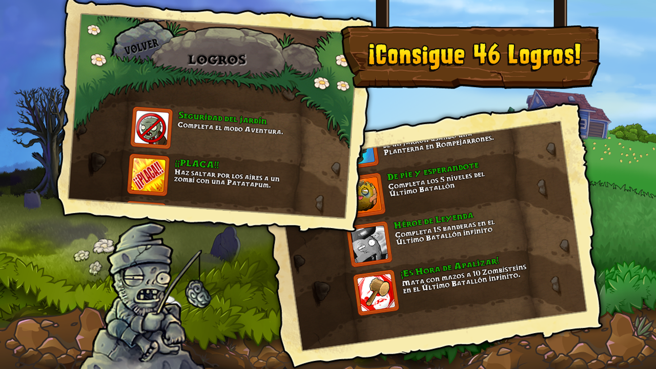 Conquista los 50 niveles del modo Aventura: por el día, la noche, en la niebla, en una alberca, en el tejado y mucho más. ¡Además, defiéndete mientras puedas de una oleada continua de zombis en el modo Supervivencia!