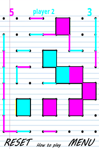 1) Toque en medio de dos puntos para marcar una línea (vertical u horizontal). Su objetivo es completar una caja de cuatro lados.