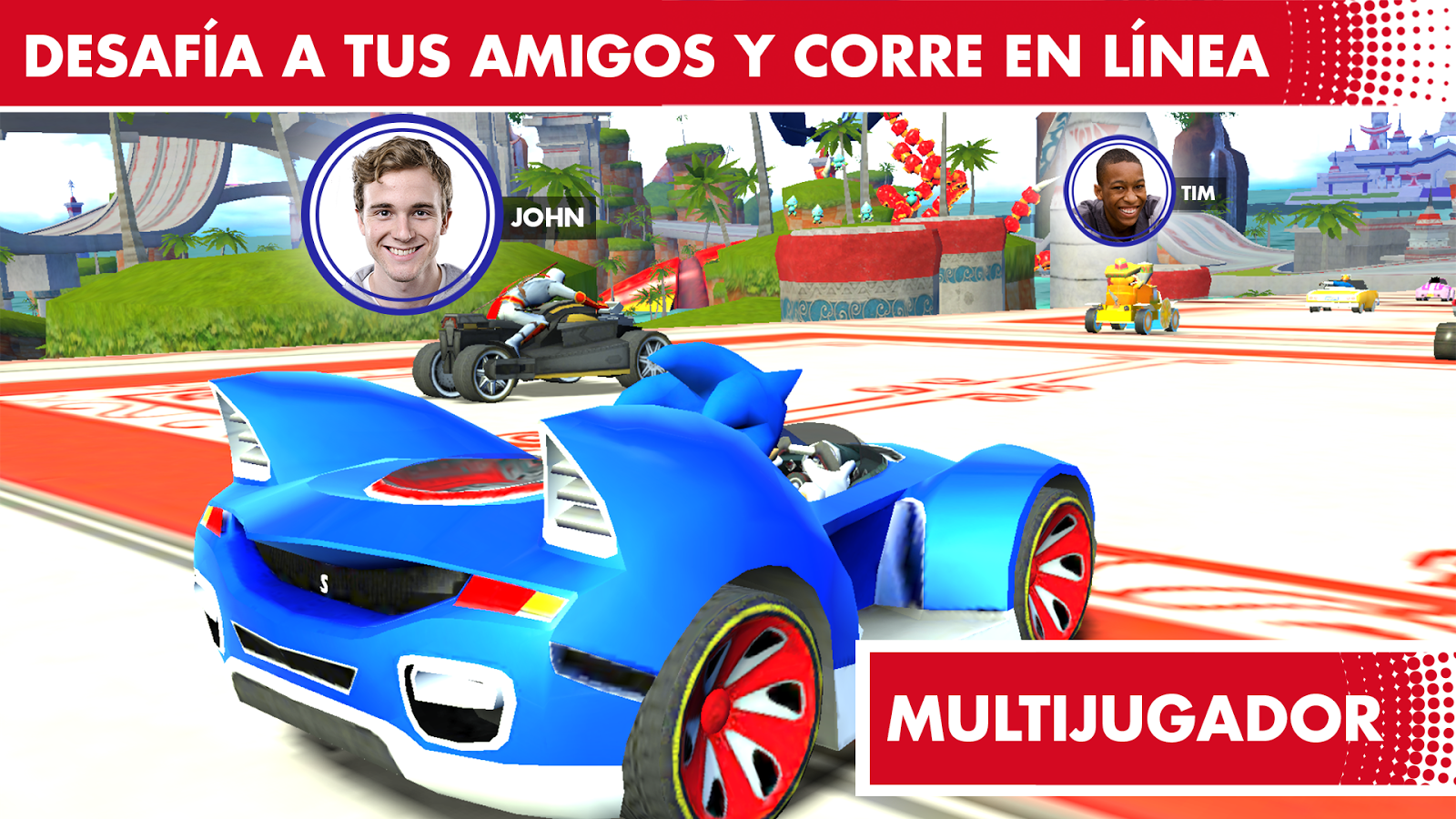¡Corre con Sonic y los All-Stars legendarios y prepárate para transformarte! Corre por tierra, mar y aire en una batalla a gran velocidad para llegar a la línea de meta mientras tu increíble vehículo se transforma en un coche, un barco o un avión. ¡Las carreras en los móviles no volverán a ser lo mismo!