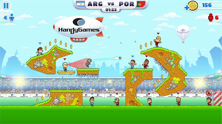 Carga el balón, calcula la potencia ¡y derriba a tus rivales de un chupinazo! Pasa, chuta y destruye a tus adversarios en increíbles combates en el campo de juego. Planifica pases eficaces, derriba a los cachas y machaca al portero para ganar el partido.