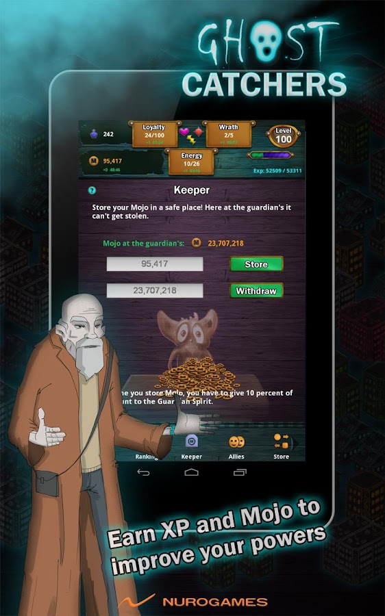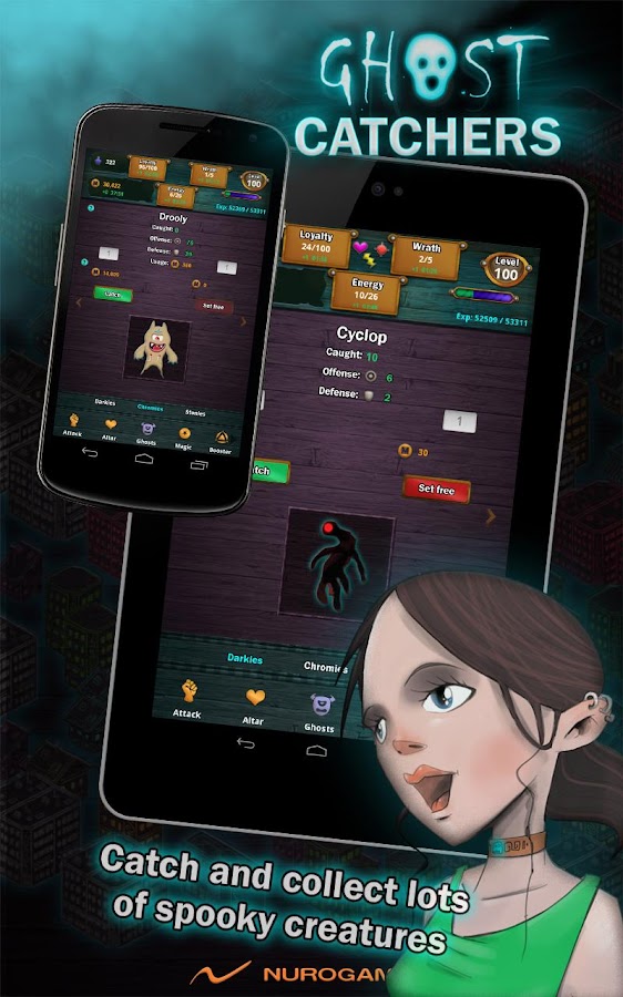 • Gánate la lealtad de tus fantasmas para que puedan apoyarte en la lucha contra otros cazadores de fantasmas y sus espíritus.